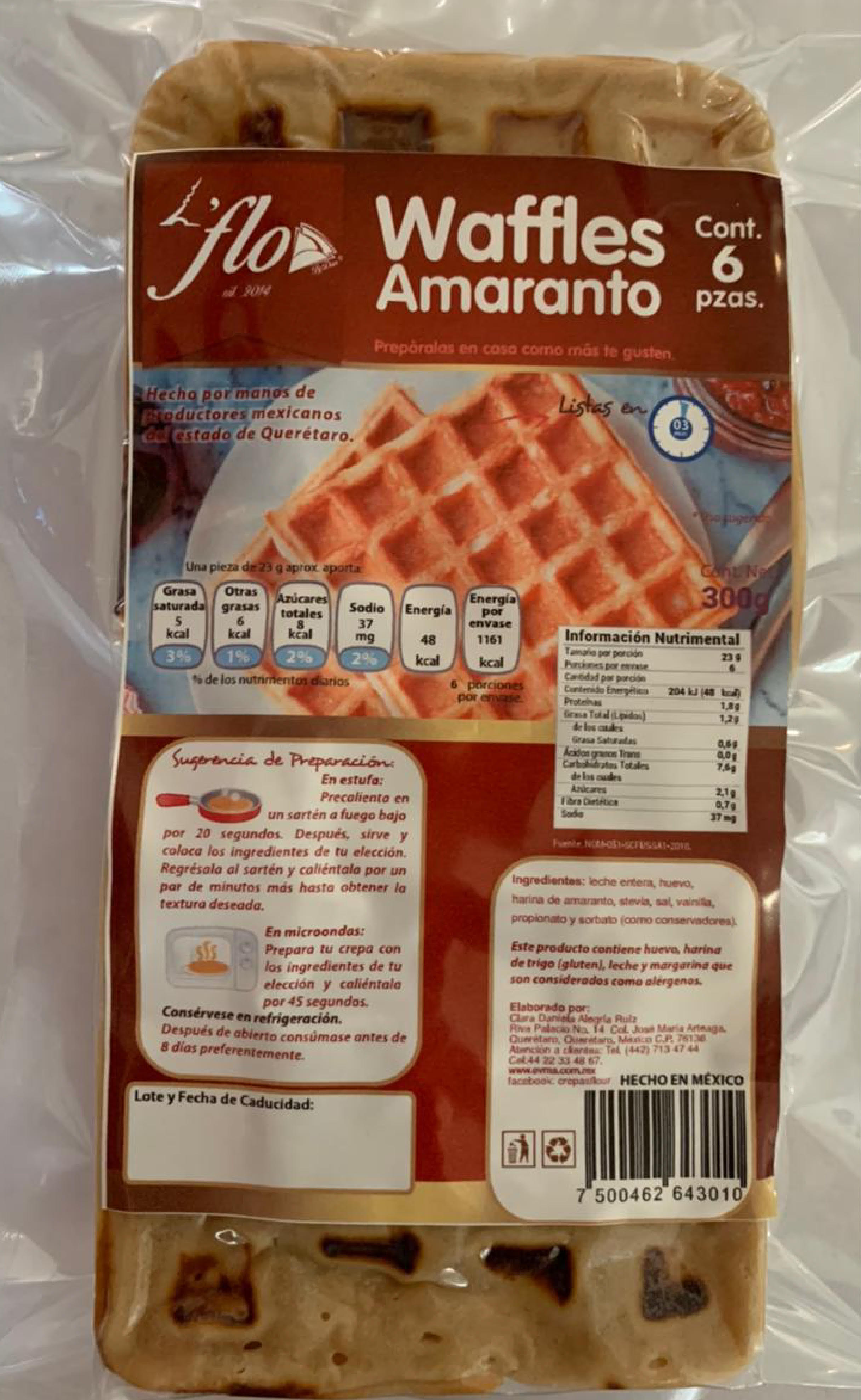 - Waffles Amaranto 300 gr Cont 6 pzas